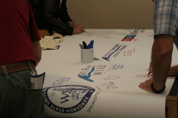 The exhibit was curated by Evie Rodenbaugh, Graduate Assistant for the Sangamon Experience at UIS. According to the program’s website, the Sangamon Experience “presents the history of the Sangamon Region through an on-campus exhibition space, online projects, and community collaborations.”